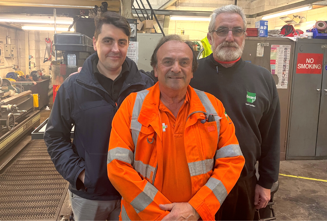 (From left to right, Michael Lennon; Engineering Manager, Paul Powers; Electrician; and Mark Crawford; Electronics Project Manager. )
