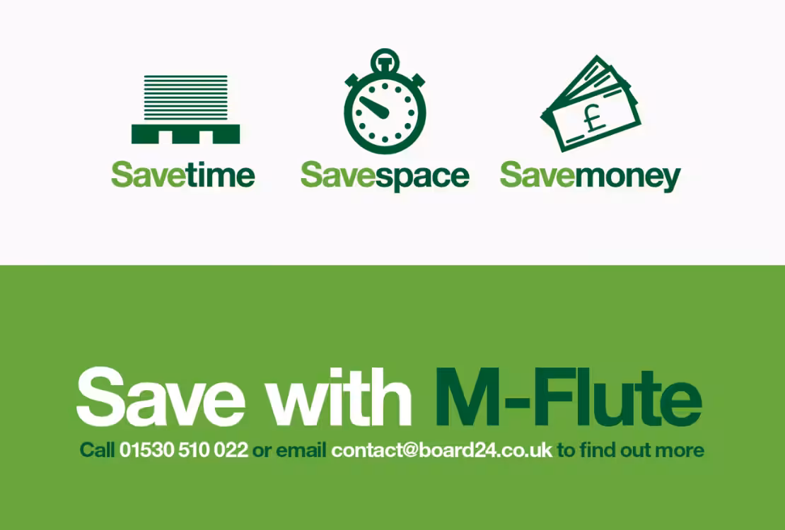 Logson’s M-flute has been developed by its Board24 sheet feeding arm and, according to the company, offers up to a 36% saving on pallet space and around 30% more sheet board on a full lorry load.